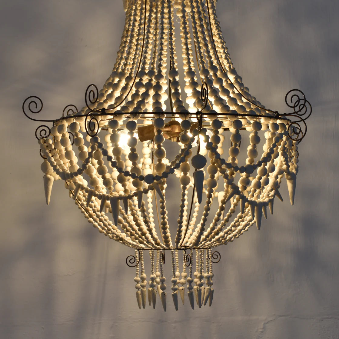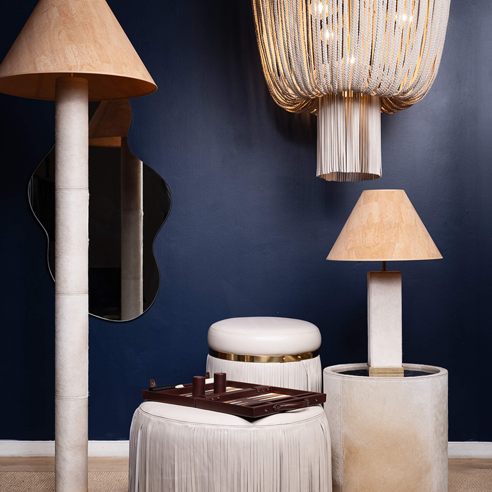 Medium Round Urchin Leather Chandelier in Cream-Stone Leather