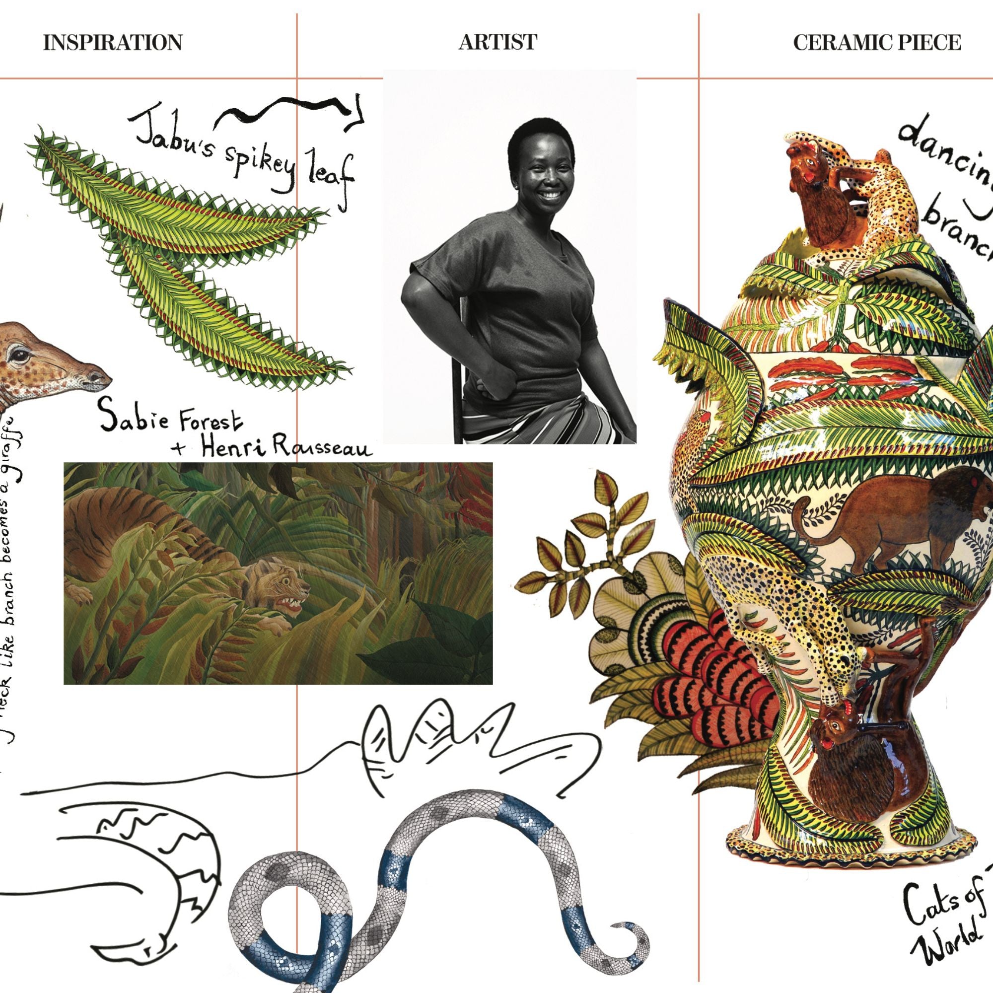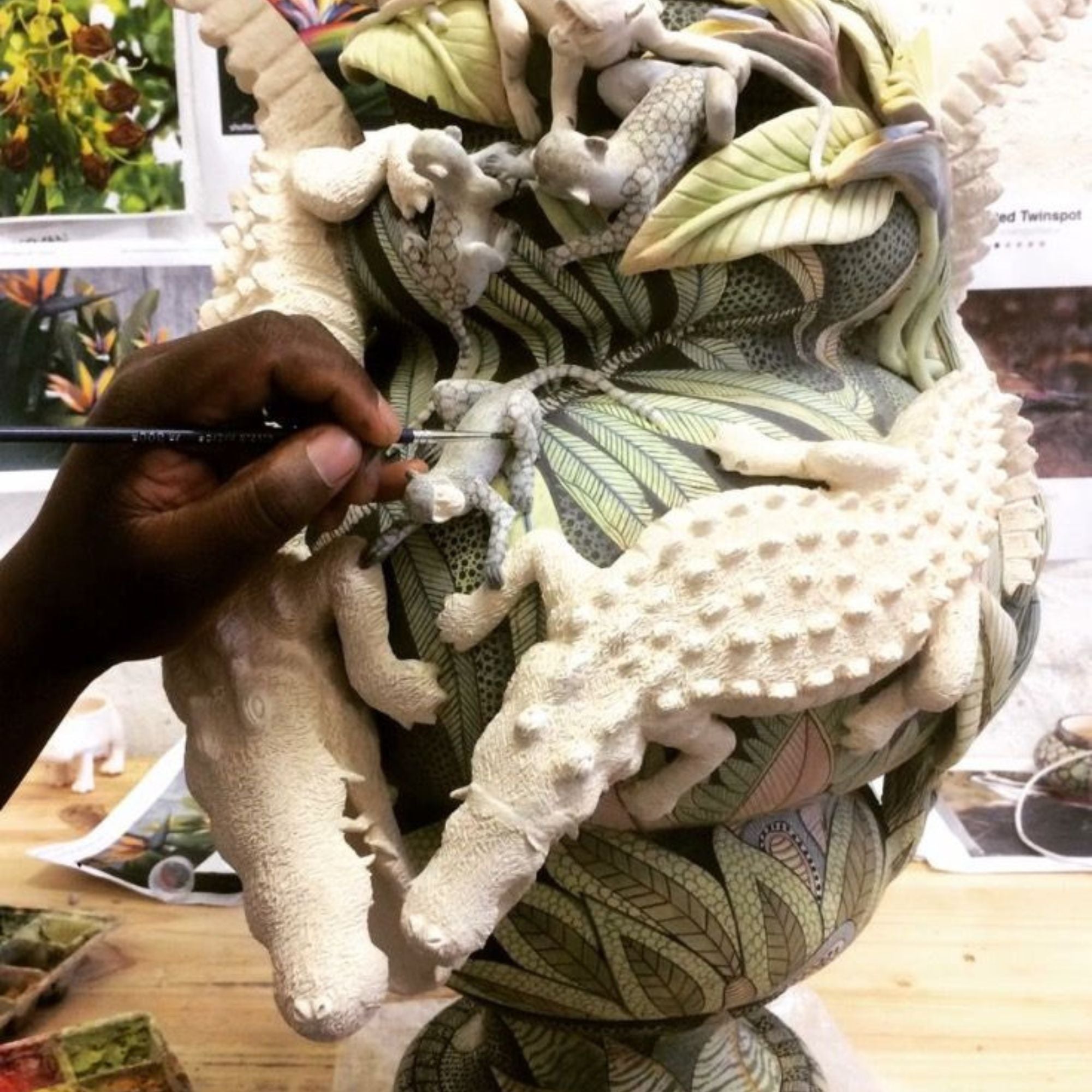 Each Ardmore ceramic piece is a collaborative process – from the design sketches, the sculptor or thrower will begin to mould the clay. Fantastical beasts and foliage take shape in skilful hands, before the finished piece is fired in our kilns and allowed to cool.