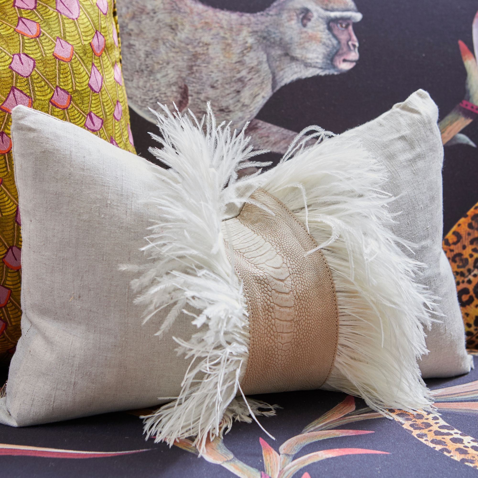 Ikhaya Africa's contemporary "Safari chic" designs feature a unique mix of exotic materials - from ostrich eggs to porcupine quills to feathers to game hides.