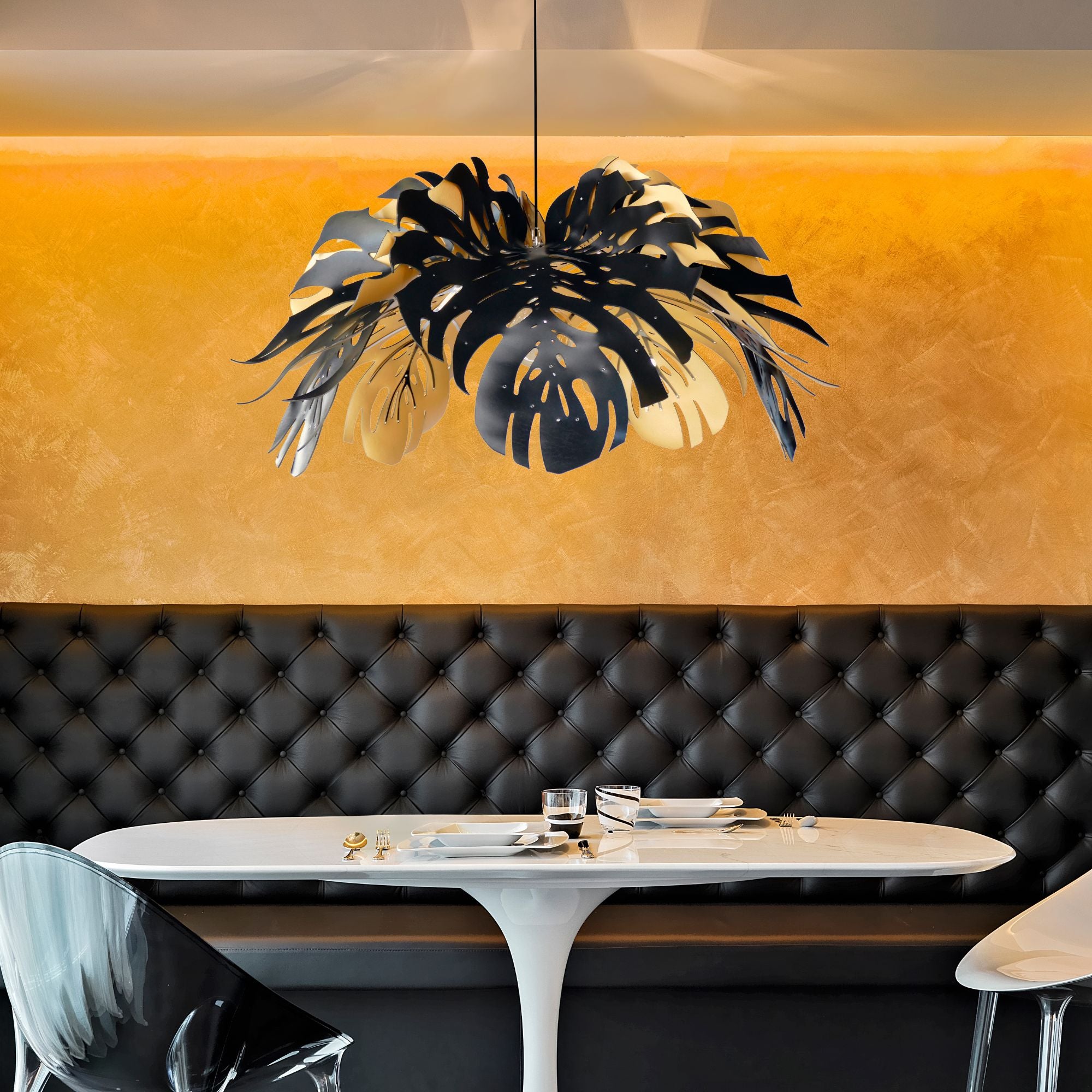 Clarisse Design's curated selection of leather pendant lighting is inspired by subtropical foliage and vegetation found throughout