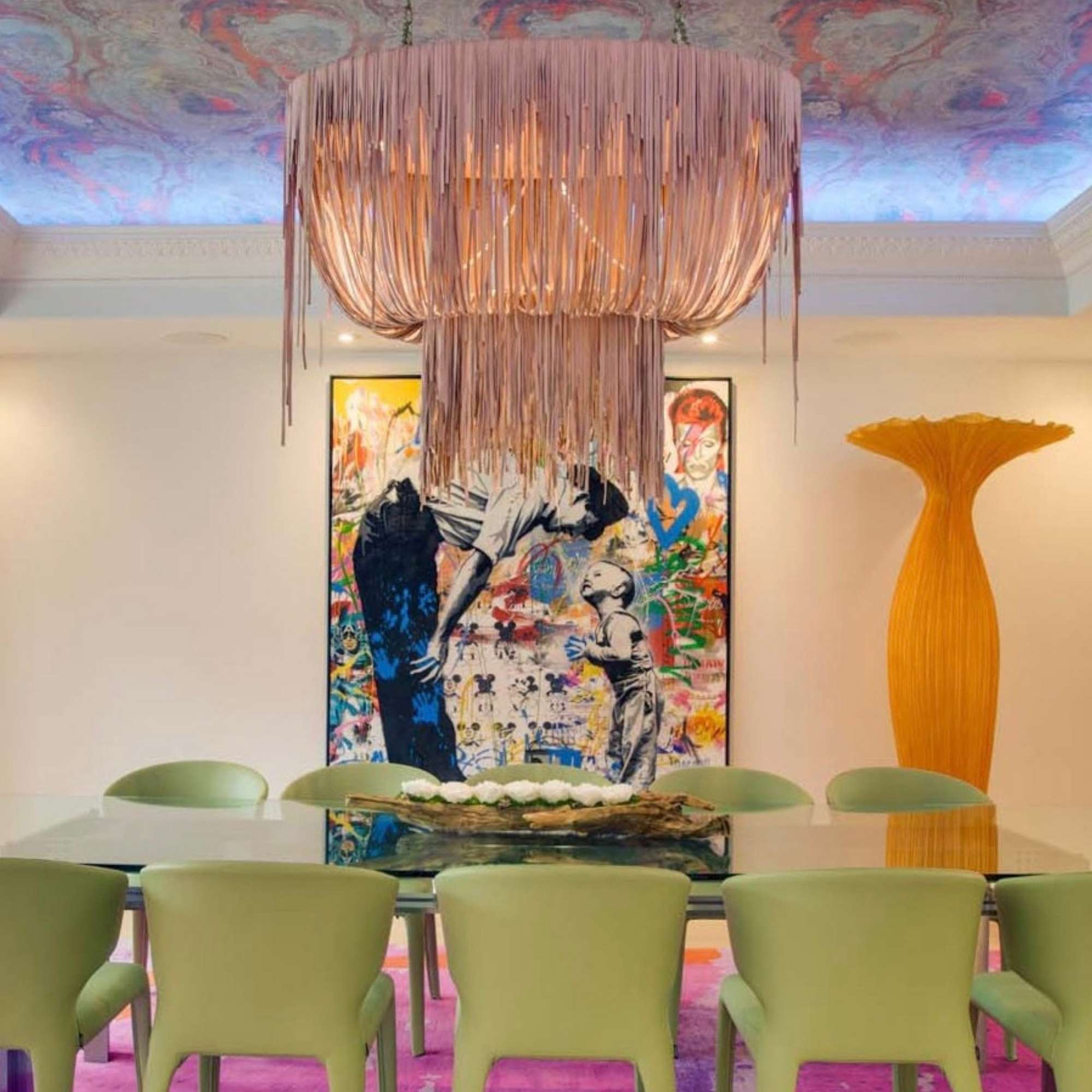 Add Elegance to Any Space With Our Large Empire Leather Fringe Chandelier